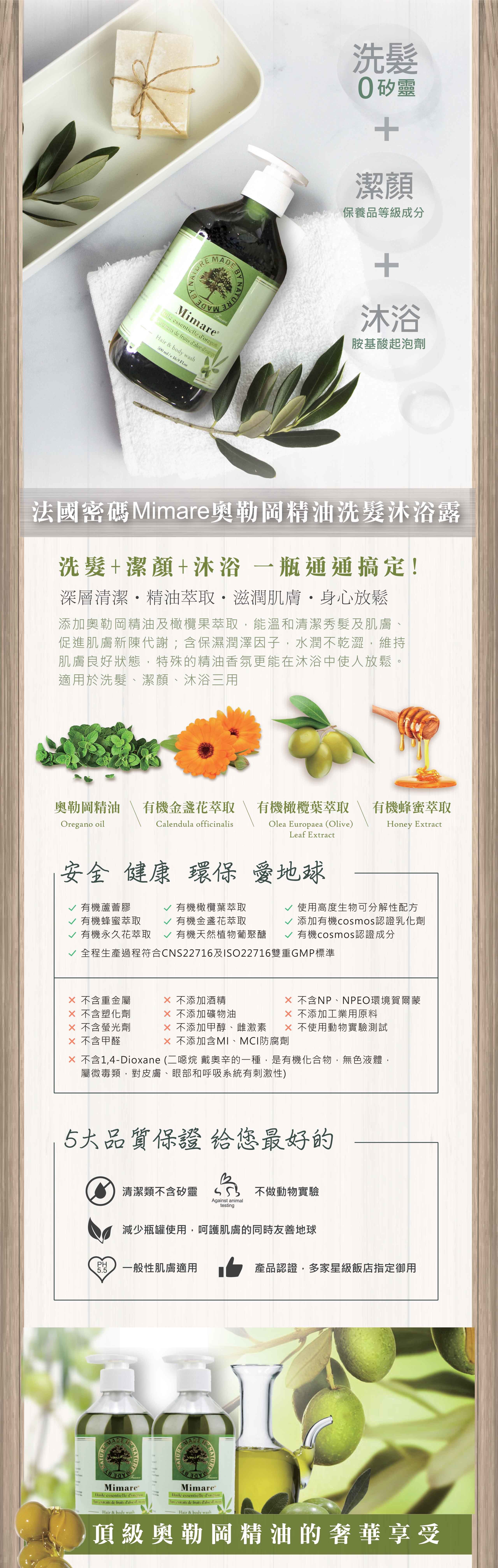 富含有機橄欖葉萃取及奧勒岡精油,能溫和清潔毛